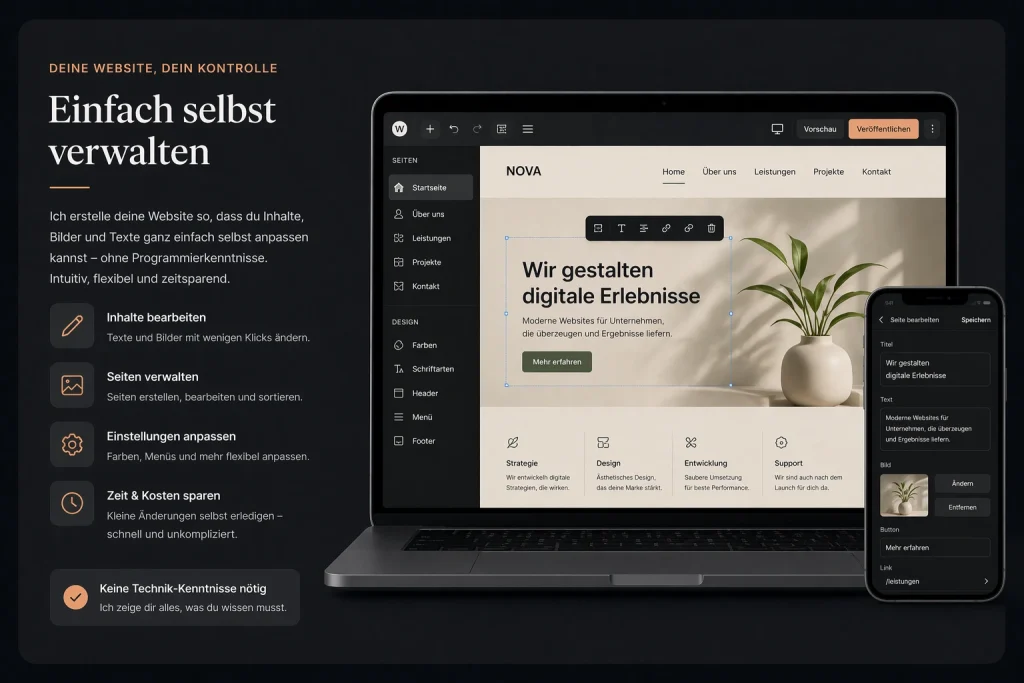 Mit Tools wie WordPress und Elementor gestalte ich Websites, die ansprechend, benutzerfreundlich und leicht zu pflegen sind